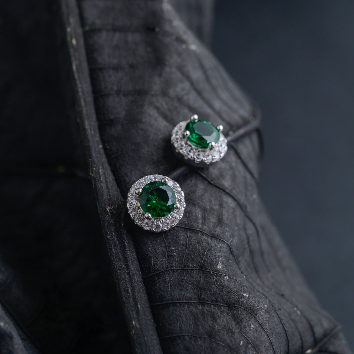 Silver Emerald Green Studs